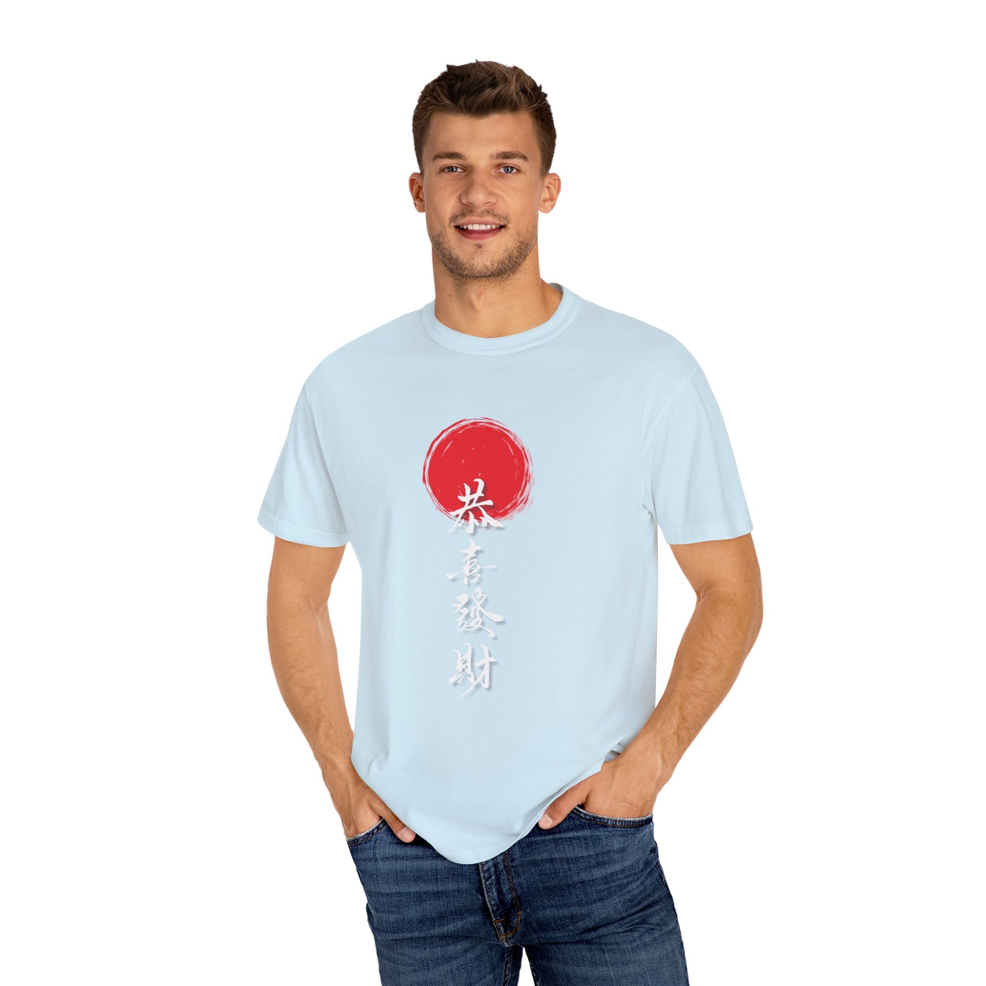Celebrate comfort and tradition with this unisex garment-dyed T-shirt featuring the iconic “Gong Xi Fa Cai” (恭喜發財) calligraphy — a timeless wish for prosperity and good fortune.